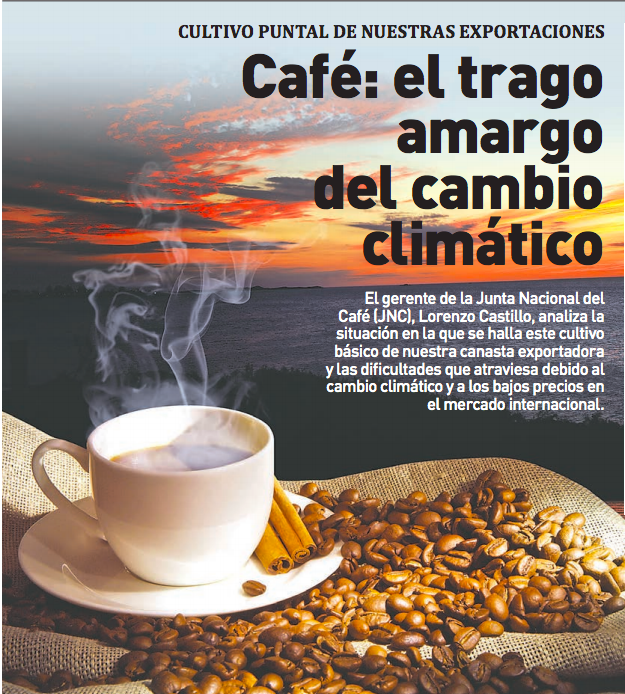 CULTIVO PUNTAL DE NUESTRAS EXPORTACIONES El gerente de la Junta Nacional del Café (JNC), Lorenzo Castillo, analiza la situación en la que se halla este cultivo básico de nuestra canasta exportadora y las dificultades que atraviesa debido al cambio climático y a los bajos precios en el mercado internacional. Escribe: Rodolfo Ardiles VillamonteFuente: Diario El […]