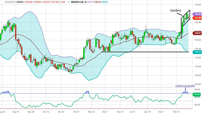 Fuente: Progreso NetworkAnálisis de los precios del café por Jos Algra Por fin el precio de la bolsa de Nueva York rompió primero el eje y luego el techo de la banda en que se mantenía desde mediados de noviembre, entró al territorio de los 130. El rally comenzó el 16 de febrero, alcanzando un máximo de […]