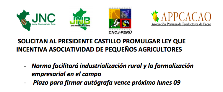 Norma facilitará industrialización rural y la formalización empresarial en el campo Plazo para firmar autógrafa vence próximo lunes 09 Los pequeños agricultores organizados en cooperativas de usuarios solicitaron al presidente Pedro Castillo Terrones, suscriba la autógrafa de la “Ley de perfeccionamiento de la asociatividad de los productores agrarios en cooperativas agrarias”, la cual fue aprobada […]