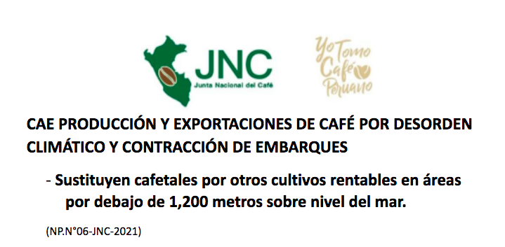 Sustituyen cafetales por otros cultivos rentables en áreas por debajo de 1,200 metros sobre nivel del mar. (NP.N°06-JNC-2021)Una contracción de -13.7% en el volumen de exportaciones de café peruano se registró en el período de enero a julio del presente año, al sumar 1 millón 067 mil quintales de 46 kilos, contra 1 millón 267 […]