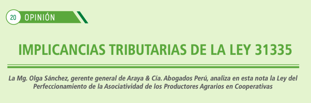Fuente: Revista Agroexportaciones & Medio Ambiente La Mg. Olga Sánchez, gerente general de Araya & Cía. Abogados Perú, analiza en esta nota la Ley delPerfeccionamiento de la Asociatividad de los Productores Agrarios en Cooperativas La Ley 31335, Ley del Perfeccionamiento de la Asociatividad de los Productores Agrarios en Cooperativas Agrarias, fue publicada en el Diario […]