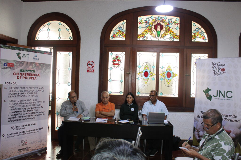 La vicepresidenta de la JNC, Raquel Condori Vivanco, productora de café en Chanchamayo, y el gerente de la Convención Nacional del Agro Peruano (Conveagro), Luis Cruz, coincidieron en advertir el grave impacto social que acarreará la medida parlamentaria y la poca eficacia ministerial sobre la implementación de la norma europea.